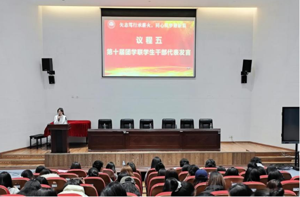 第十届团学联学生干部代表罗茜、赵虹翔分别作就职发言。他们表示将牢记责任与使命,团结带领全体成员,聚焦同学需求,提升服务效能,努力开创团学工作新气象。接着,团总支学生副书记杨斐斐带领新一届学生干部及干事进行庄严宣誓,充分展现了新一届学生干部服务同学、奉献学院的坚定决心。