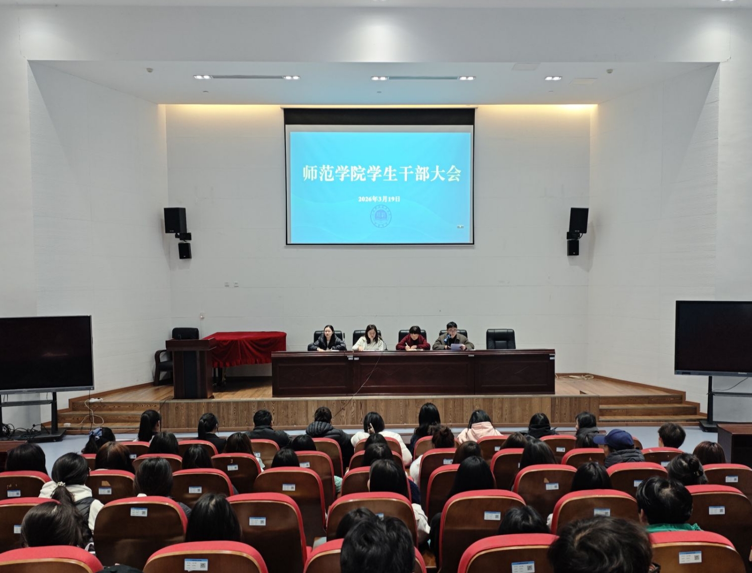 为进一步加强学生干部队伍建设,提升团学组织的凝聚力与执行力,确保新学期各项工作有序开展,3月19日中午,师范学院学生科在岳秀楼翔凤厅召开第十届团学学生干部大会。学院党总支副书记姚光红、学生科全体老师出席会议,第十届团学全体学生干部以及大一、大二各班班长、团支书参加会议。