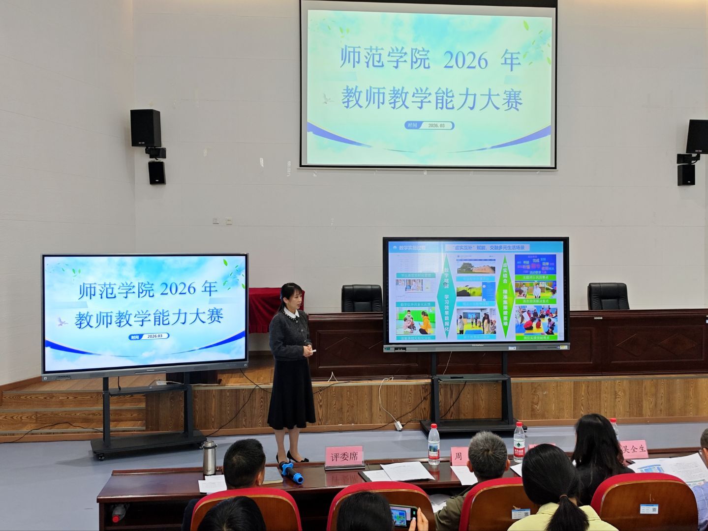 为深入落实立德树人根本任务,锤炼教师教学基本功,推动教学改革创新,助力高素质专业化教师队伍建设,师范学院2026年教师教学能力大赛于3月31日在岳秀楼翔凤厅举行。