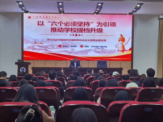 11月24日上午,学校党委委员、副校长袁祖洪以《以“六个必须坚持”为引领,推动学校提档升级》为题,为机关三支部、师范学院党总支师生党员讲授主题教育专题党课。
