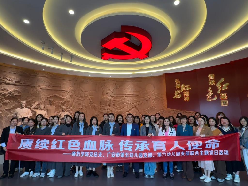 为深入贯彻习近平总书记系列重要讲话精神,创新党建工作载体,擦亮“红烛魂”党建品牌,4月21日下午,师范学院党总支携手广安市第五幼儿园、第六幼儿园党支部共赴华蓥三红馆及毕占云生平事迹展陈馆,开展了一场别开生面的联合主题党日活动。全体党员走进红色旧址,在革命精神与幼教初心的交汇点上,上了一堂“行走的党课”。