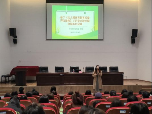 11月18日,师范学院在岳秀楼翔风厅举办“基于《幼儿园保育教育质量评估指南》下的安吉游戏理念园本化实践”专题学术讲座。活动特邀四川省中小学名校长、广安实验幼儿园罗凤园长担任主讲,学前教育专业共180余名师生参加。