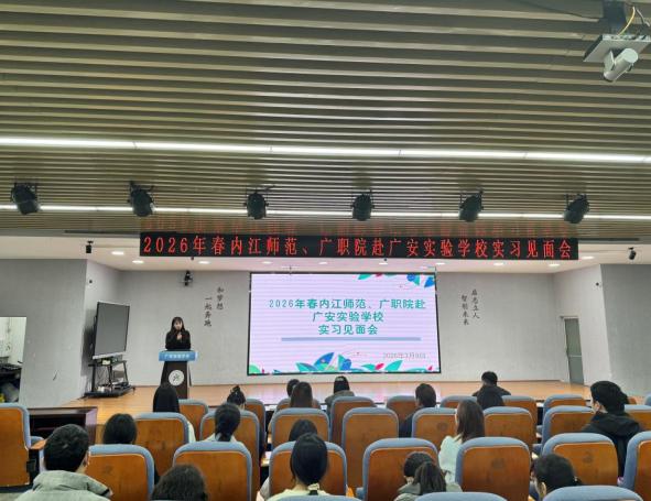 3月9日,师范学院组织实习生前往广安实验学校,参加2026年春期实习见面会,正式开启教育实习工作。师范学院副院长贺雪萍、教学科教师胡超、带队教师文婷婷及全体实习生参加会议。