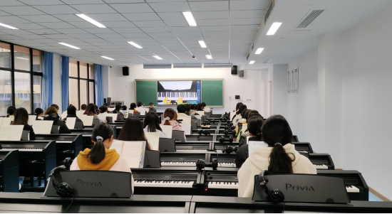 电子钢琴实训室主要用于对学生进行钢琴技能的集中教学。通过教师演示讲解、学生独奏、合奏、齐奏等形式,提高学生的即兴伴奏能力和钢琴演奏水平。该实训室集视、听、练为一体,配备数码钢琴教学中央控制系统,主要包括电钢琴、电脑、摄像机、多媒体投影等设备。通过该系统,可以实现主观化、立体化、集体化、小组化或个别化等多种钢琴教学形式,能实现整班集体琴法指法授课,能增强学生对电钢琴操作的感性认识,使学生熟练掌握钢琴的演奏及歌曲弹唱。