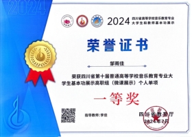 四川省普通高等学校音乐教育专业学生基本功展示活动,一等奖6项,二等奖20项,三等奖15项;团体二等奖1项。